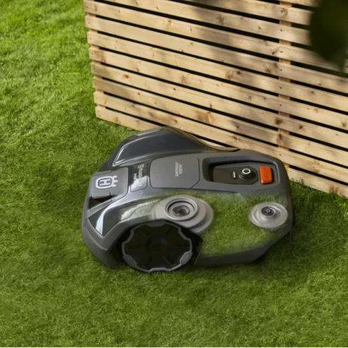 Der HUSQVARNA Automower AM 310E EdgeCut ist ein intelligenter, autonomer Mähroboter in Schwarz, ideal für kleine und mittelgroße Gärten. Mit der EdgeCut-Technologie schneidet er präzise entlang von Rasenkanten, während die intelligente Navigation Hindernisse erkennt und sicher umgeht.
